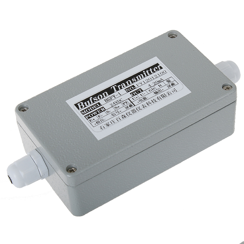 BSFY-1單路傳感器信號電流變送器,可直接連接1~4個350Ω(或者1~8個700Ω)應變式傳感器,負載能力強,,整體采用密封式防水鑄鋁外殼防護等級達到IP66,內部器件均采用原裝進口高性能器件,將傳感器的輸出信號進行精密放大,線路內部進行穩(wěn)壓,恒壓供橋、電壓電流轉換,阻抗適配,線性補償,溫度補償?shù)龋瑢⒘W量轉換成標準電流信號輸出:0~5mA,0~10mA,0~20mA,4~20mA,5±5mA,10±10mA,12±8mA后,直接與自動控制設備(單片機、PLC、巡檢儀等)接口或與計算機聯(lián)網(wǎng),具備標準信號外調零、外調增益功能,輸入過壓保護,輸出短路保護等功能。